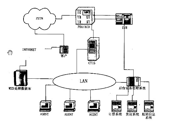目前,機(jī)場(chǎng)的客票銷售業(yè)務(wù)在市內(nèi)及在市外設(shè)立了很多代銷點(diǎn),主要是通過(guò)面對(duì)而的方式為旅客提供諸如售票、訂票、業(yè)務(wù)咨詢等業(yè)務(wù),這種而對(duì)面的方式使得機(jī)場(chǎng)售票網(wǎng)點(diǎn)多、成木高,客戶使用也并不方便。隨著社會(huì)生活方式的變化,這種方式的缺點(diǎn)日益顯現(xiàn).自上世紀(jì)90年代中期以后,針對(duì)這種情況,不少機(jī)場(chǎng)在部分大中城市推了了自動(dòng)問(wèn)訊業(yè)務(wù),旅客可以通過(guò)撥打電話的方式,進(jìn)行部分航班的業(yè)務(wù)查詢,如查詢航班等,但是由于自動(dòng)問(wèn)詢電話機(jī)場(chǎng)采用的技術(shù)較為簡(jiǎn)單,存在不能對(duì)旅客信息管理分析、不能對(duì)旅客進(jìn)行個(gè)性化服務(wù)、無(wú)法完成主動(dòng)服務(wù)、媒休手段單一、不能有效得結(jié)合人工服務(wù)、可伸縮性、可擴(kuò)展性差、可升級(jí)性差等缺點(diǎn),沒(méi)有較強(qiáng)地引起廣大旅客的使用熱情。在貨物運(yùn)輸方面,也存在同樣的問(wèn)題。而隨著競(jìng)爭(zhēng)的加劇,以及新的基礎(chǔ)技術(shù)的涌現(xiàn),建設(shè)一個(gè)高效的與旅客溝通、為其提供優(yōu)質(zhì)服務(wù)的運(yùn)營(yíng)系統(tǒng)一呼叫中心勢(shì)在必行.