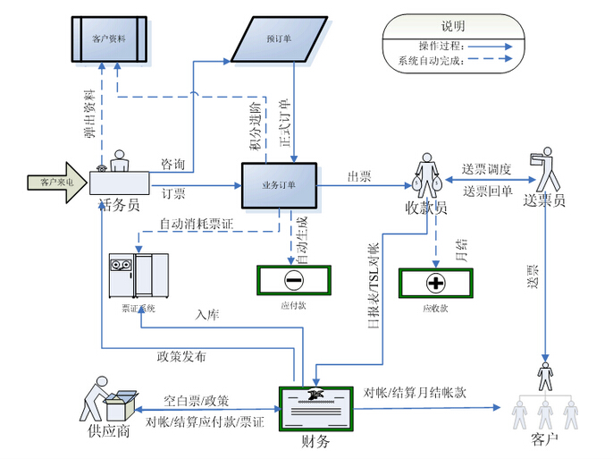 機(jī)票呼叫中心系統(tǒng)是一套專用于航空訂票業(yè)務(wù)的信息管理系統(tǒng),幫助坐席人員和管理人員完成航空訂票的各項業(yè)務(wù)功能,并在必要的情況下與企業(yè)中的其它信息系統(tǒng)交互數(shù)據(jù),推動航空訂票的訂單在企業(yè)內(nèi)部系統(tǒng)進(jìn)行流轉(zhuǎn)。