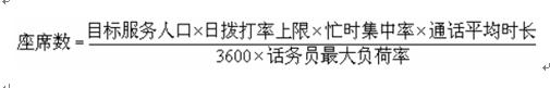 按照呼叫中心行業(yè)規(guī)范,人工座席規(guī)模測(cè)算的參考公式為: