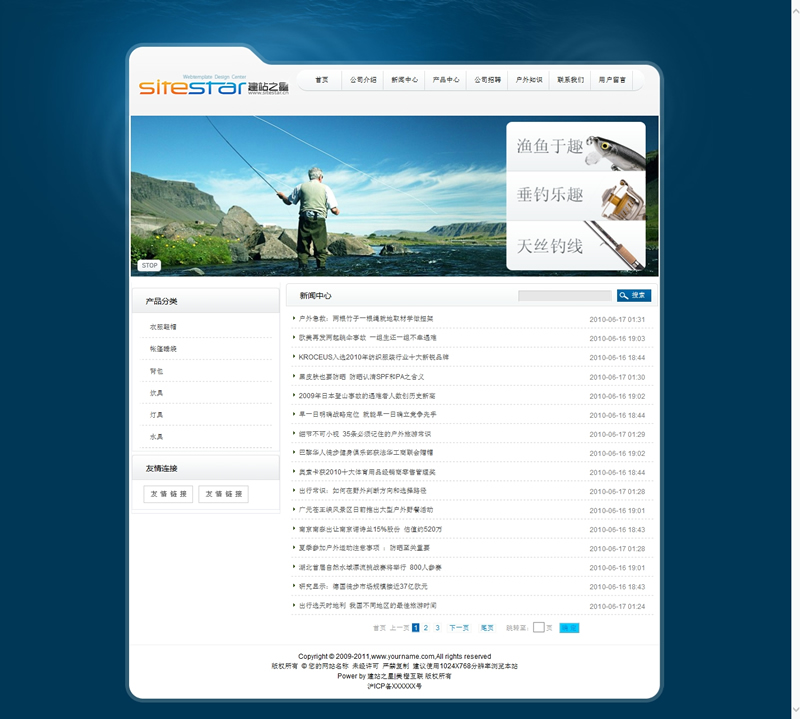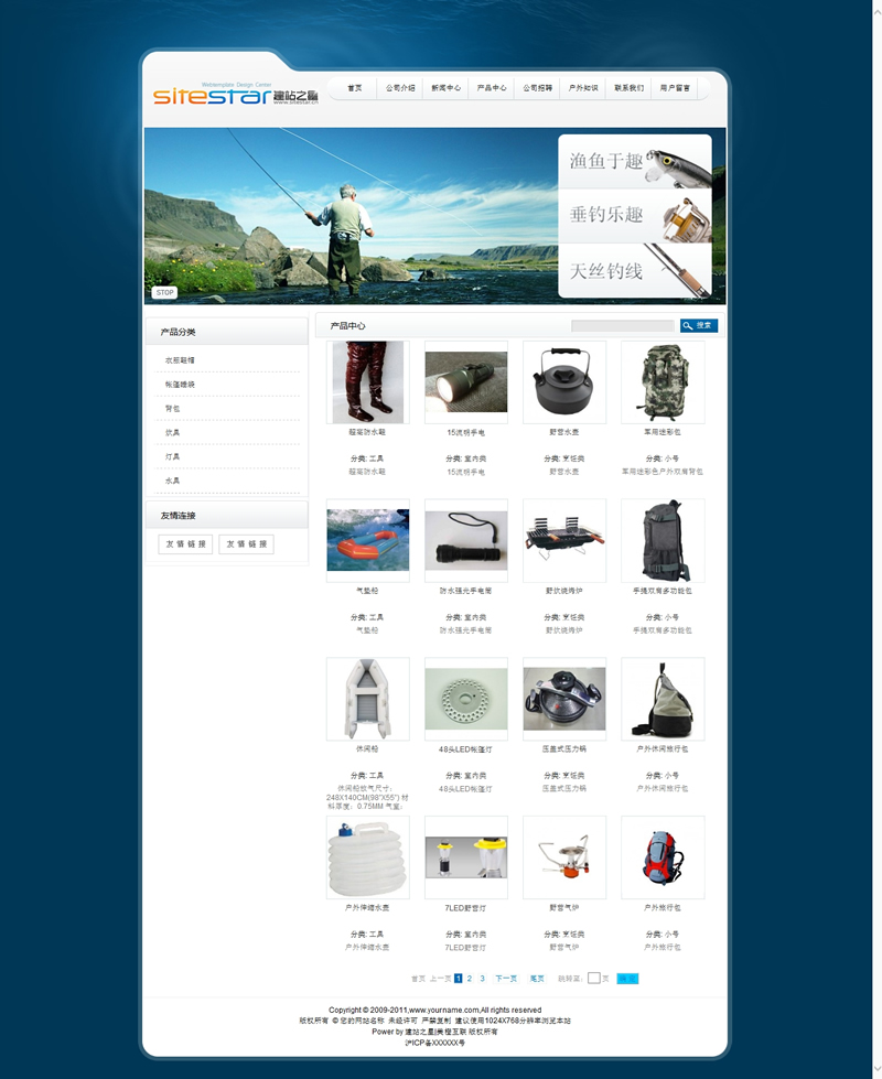 模板編號:     S1089 戶外運(yùn)動漁具商品運(yùn)動型建站模板