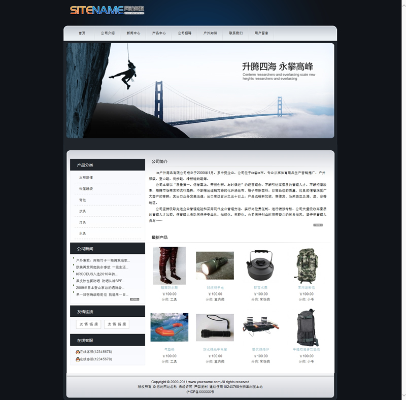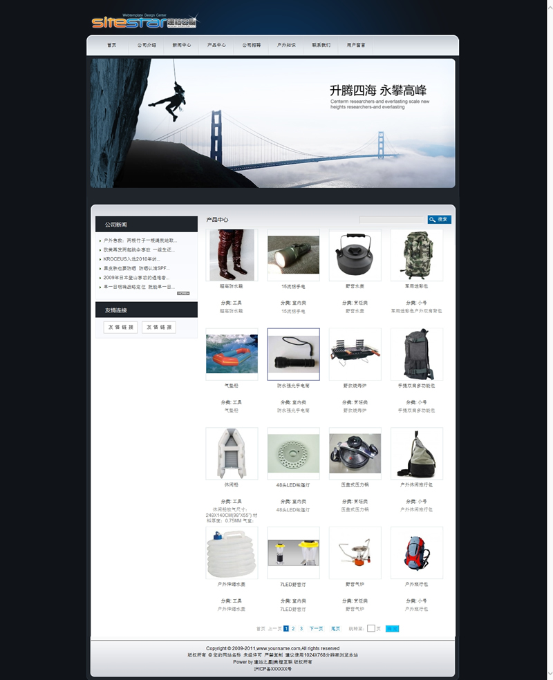 模板編號:     S1095 精典運動類型戶外產品時尚建站模板