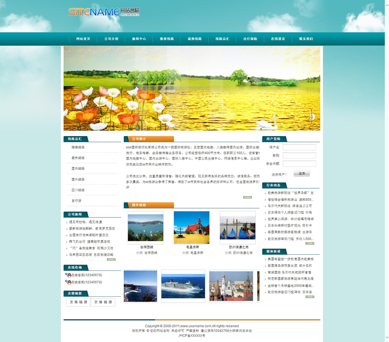 模板編號(hào):     S1437 旅游景點(diǎn)企業(yè)旅游公司建站模板