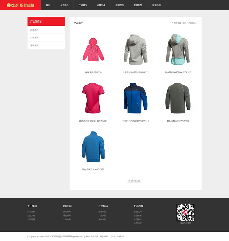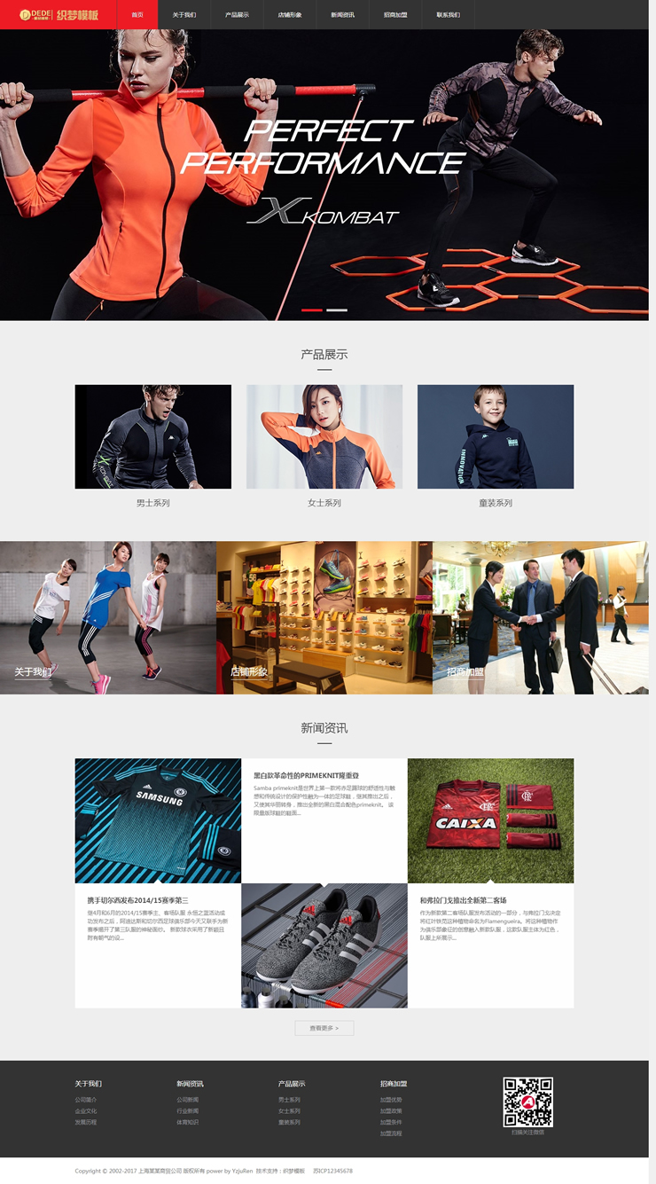 主頁 > 網(wǎng)站建設(shè) > 網(wǎng)站模板 > 婚慶、攝影、旅行、戶外 > 健身器材體育用品加盟店站織夢源碼運(yùn)動服裝加