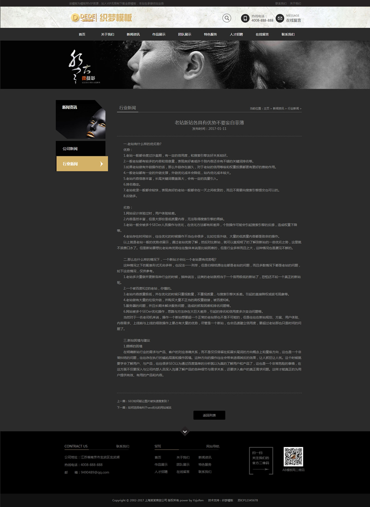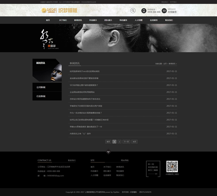 黑色高端攝影設(shè)計類網(wǎng)站源碼PS設(shè)計攝影網(wǎng)站織夢