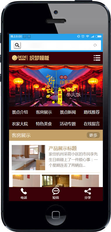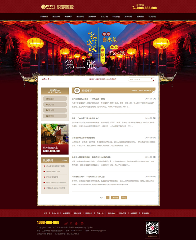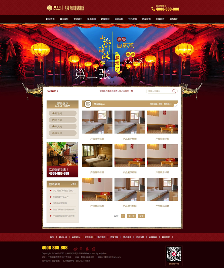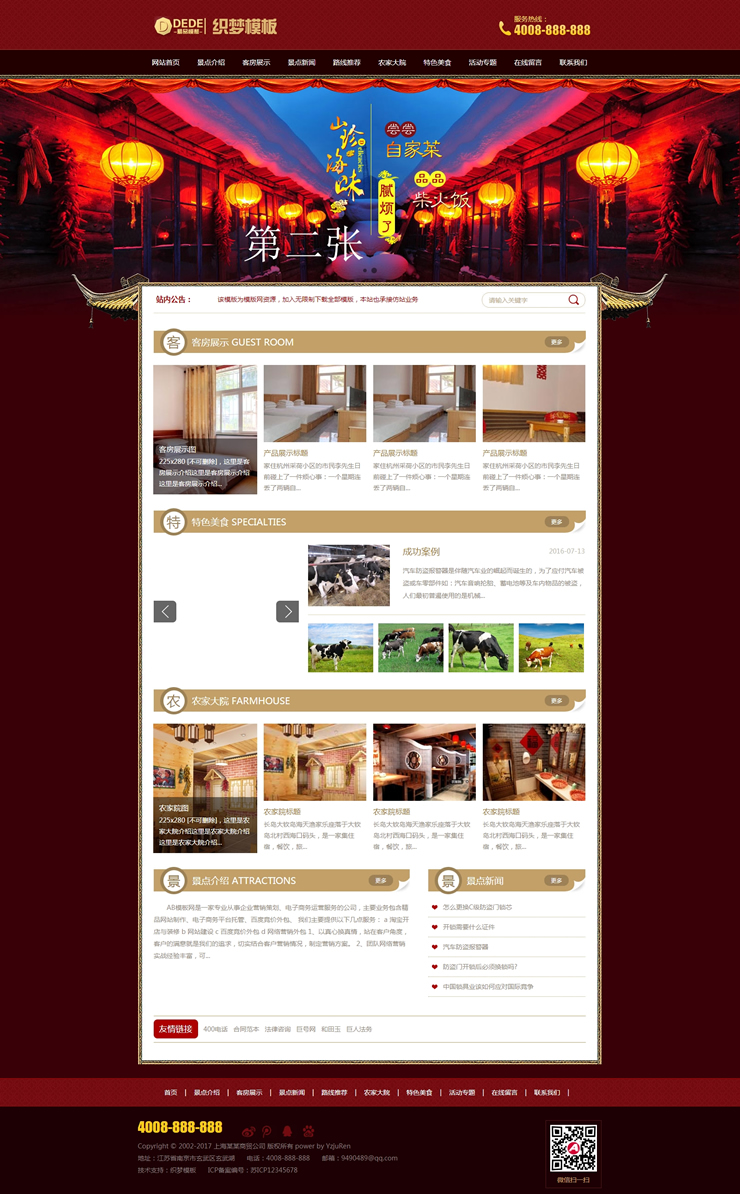 旅游住宿類織夢網(wǎng)站源碼景點旅館農家樂模板