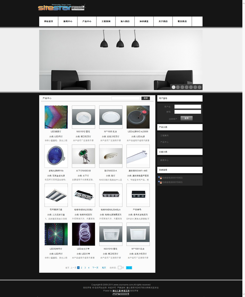模板編號:     S1321 黑色燈具用品新式照明裝飾品建站模板