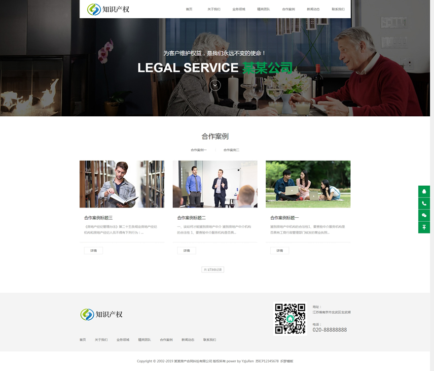 (自適應手機版)響應式房產合同糾紛知識產權類網站織夢模板HTML5知識產權法律網站源碼下載