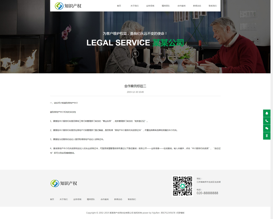 模板編號:     B2662 (自適應手機版)響應式房產合同糾紛知識產權類網站織夢模板HTML5知識產權法律網站源碼下載