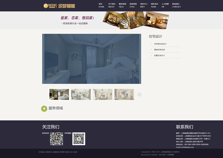 模板編號:     B1865 織夢HTML5紫色響應式軟裝裝修類企業(yè)模板