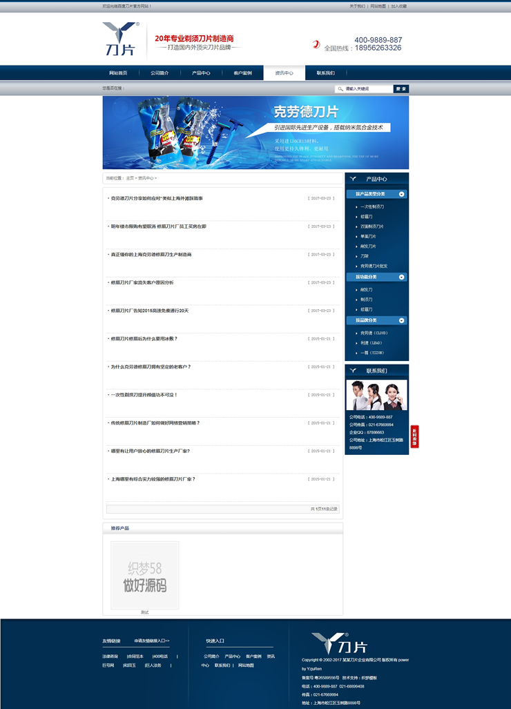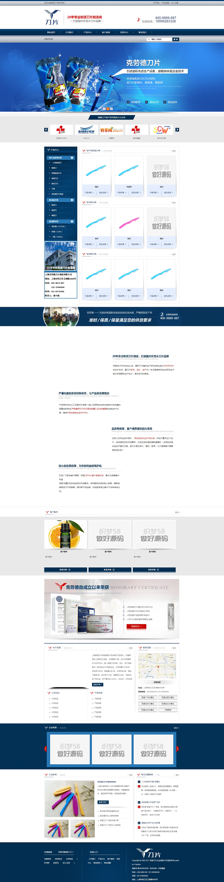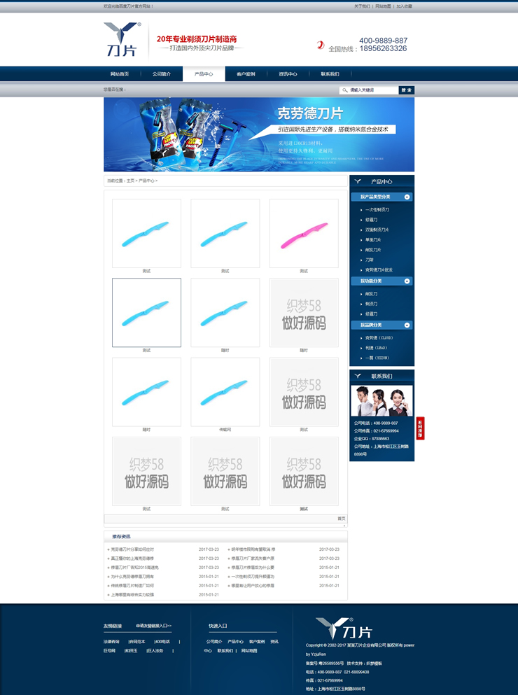 藍(lán)色營(yíng)銷型剃須刀片類企業(yè)網(wǎng)站織夢(mèng)模板(帶手機(jī)