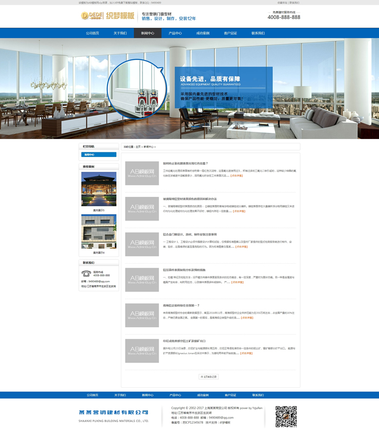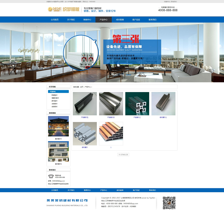 建筑建材網(wǎng)站源碼 鋁合金鋁材料織夢(mèng)模板(帶手