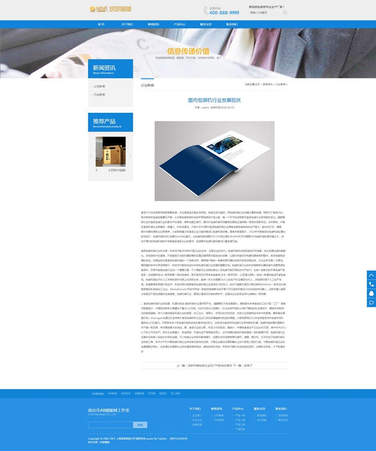 模板編號:     B1994 dedecms包裝材料織夢源碼-建筑材料類企業(yè)模板(帶