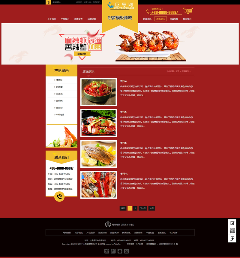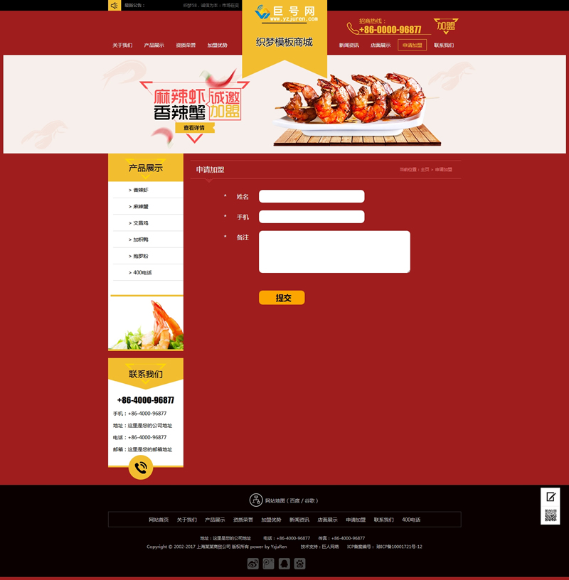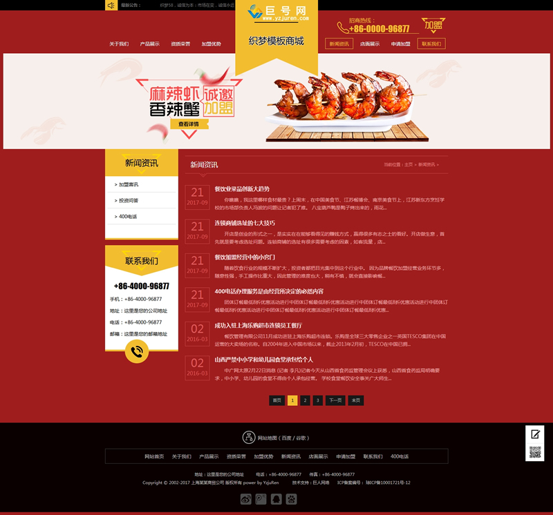 模板編號(hào):     B1041 紅色招商加盟食品類(lèi)企業(yè)網(wǎng)站織夢(mèng)模板(帶手機(jī)端