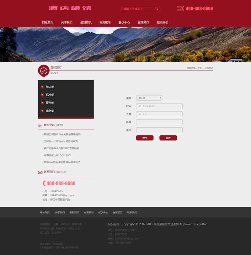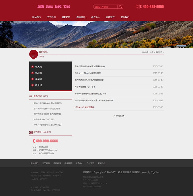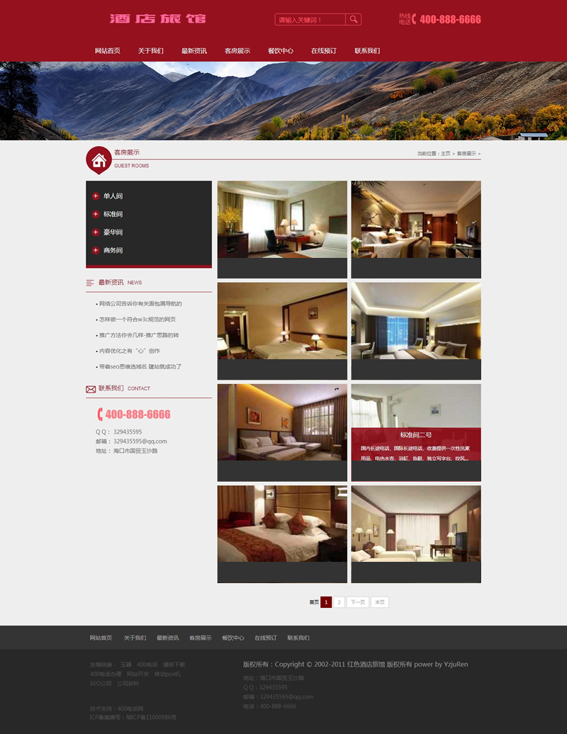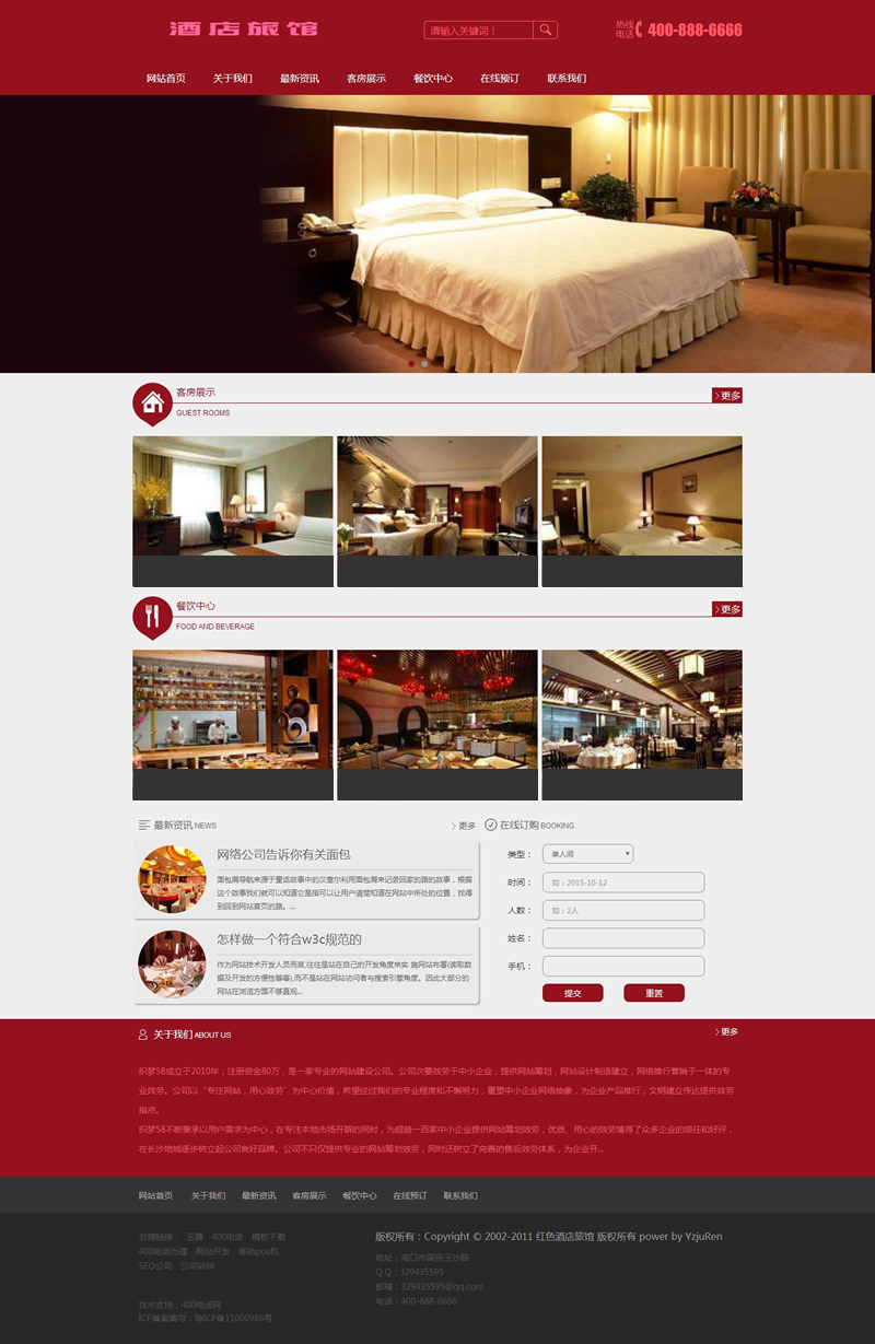 模板編號:     B1123 紅色酒店旅館餐飲類織夢網(wǎng)站模板