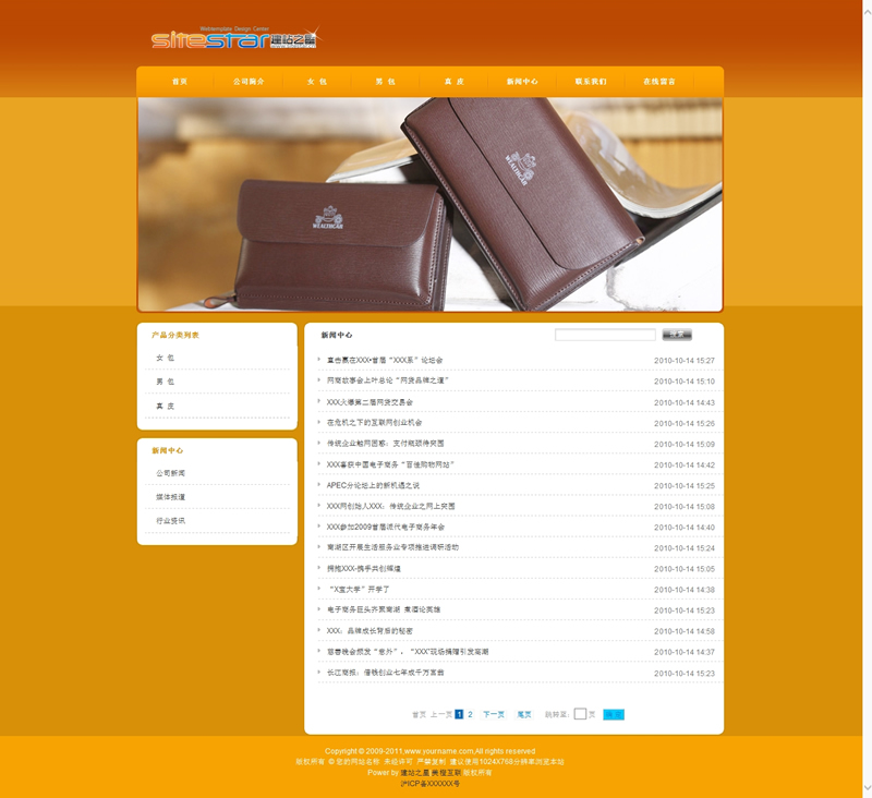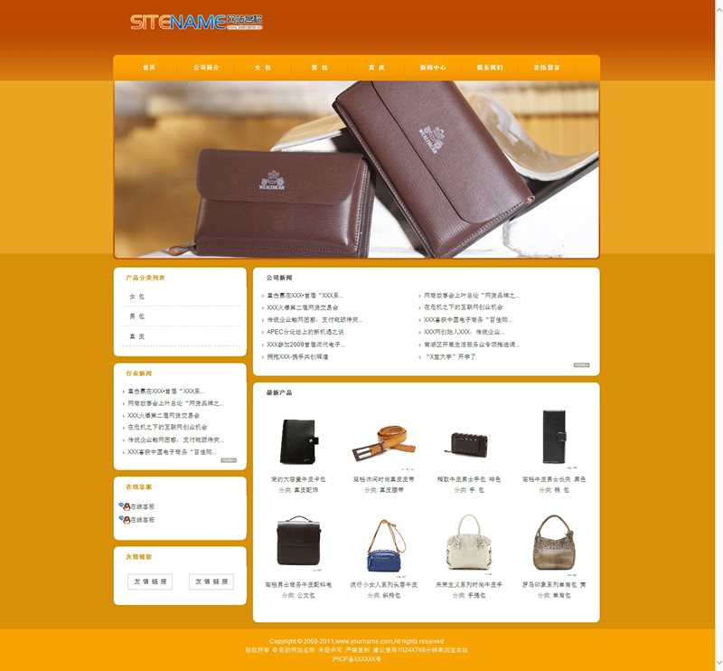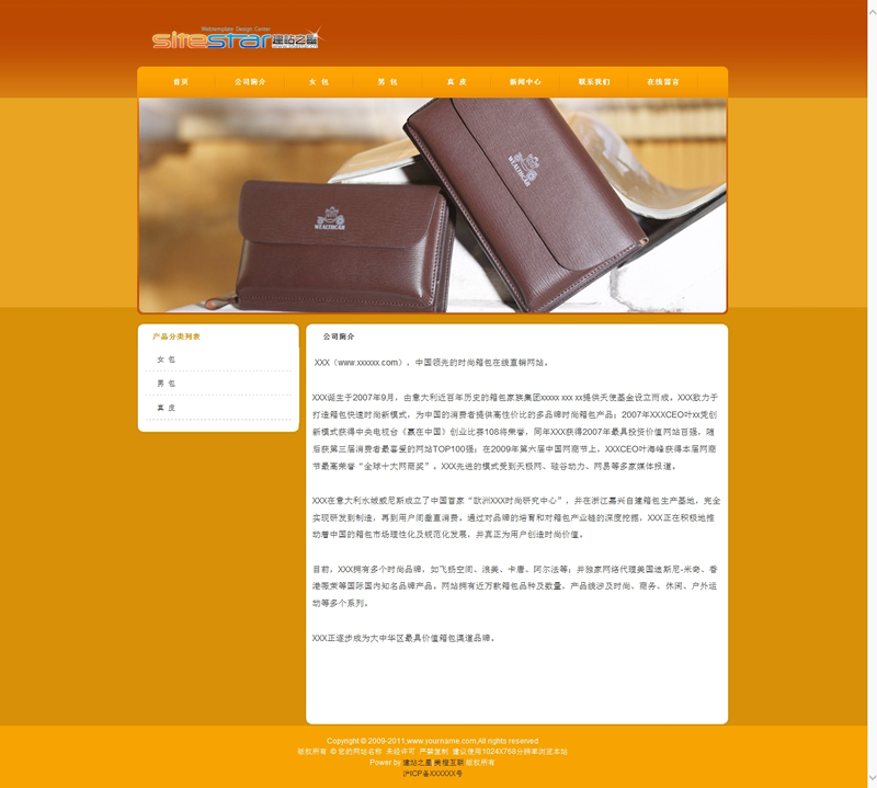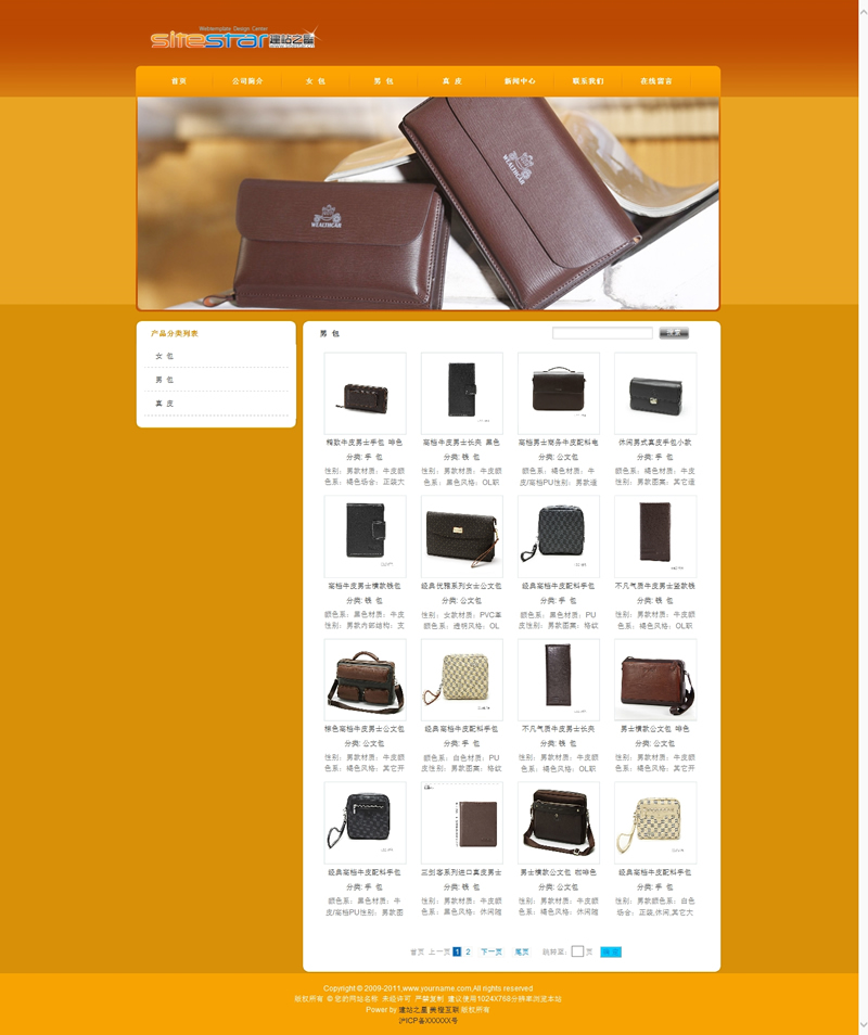 模板編號:     S1041 黃色系列皮具用品小飾品網(wǎng)站建站模板