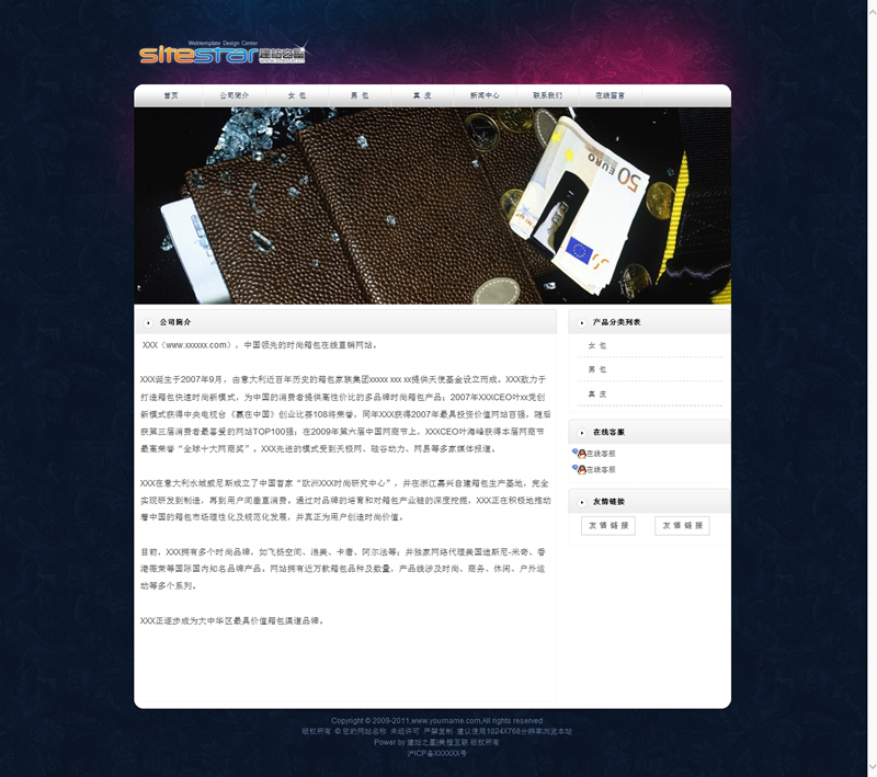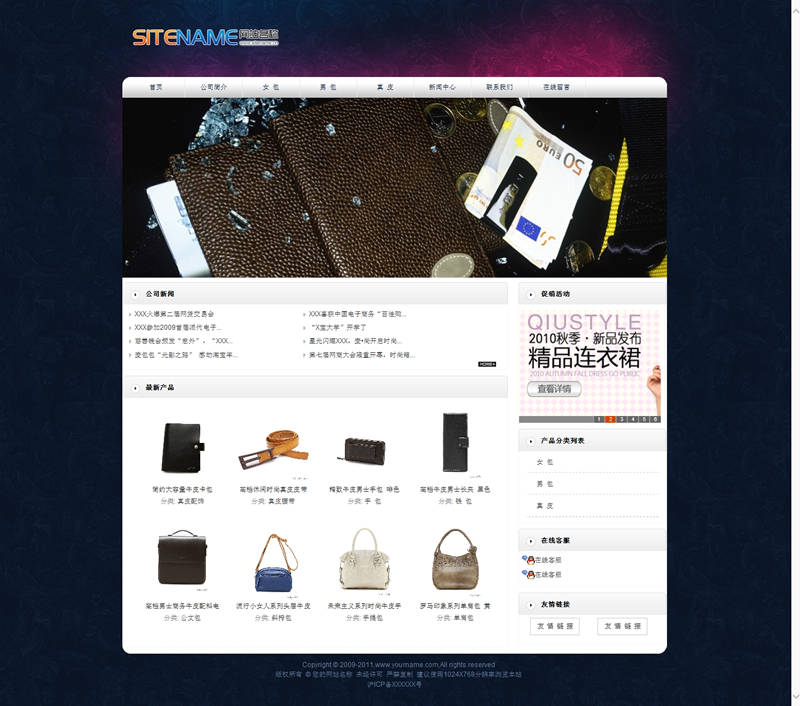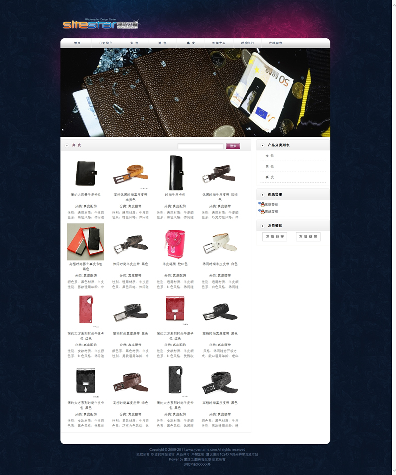 各種皮類用品皮制商品網(wǎng)站建站模板