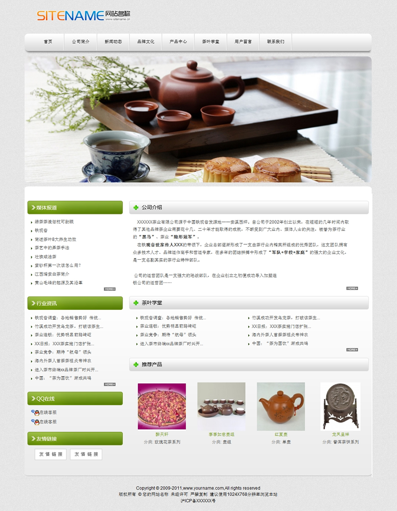 模板編號:     S1125 茶葉茶具用品通用建站綠色模板