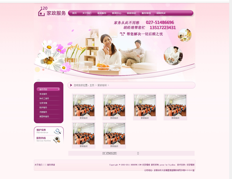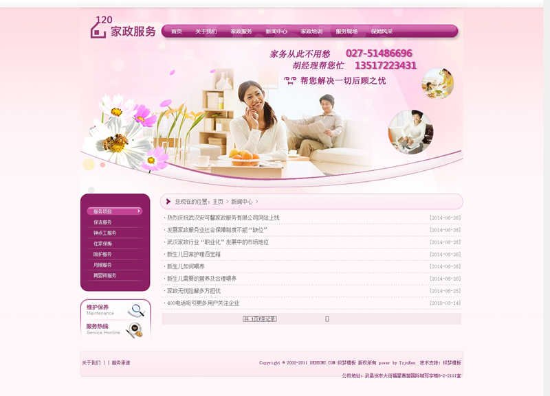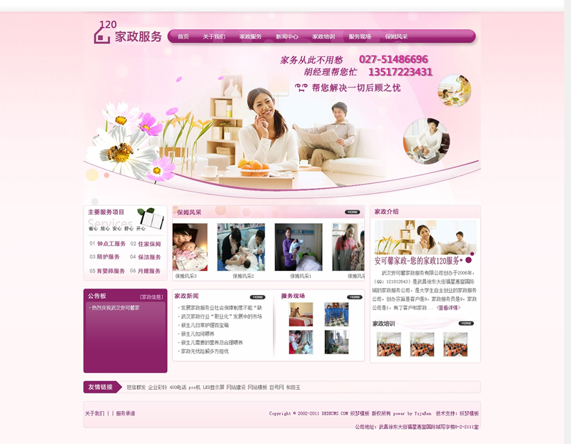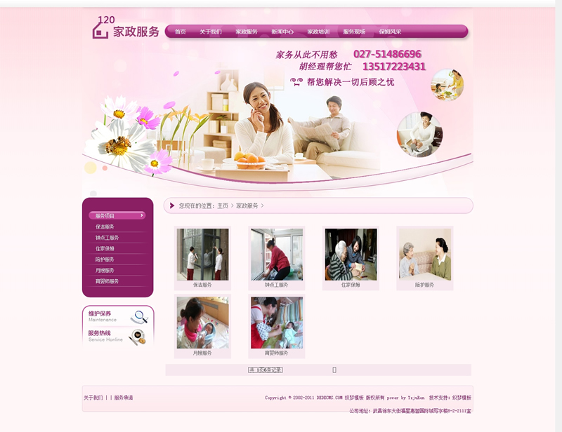 模板編號(hào):     B1387 粉紅色家政服務(wù)月嫂類網(wǎng)站織夢(mèng)模板