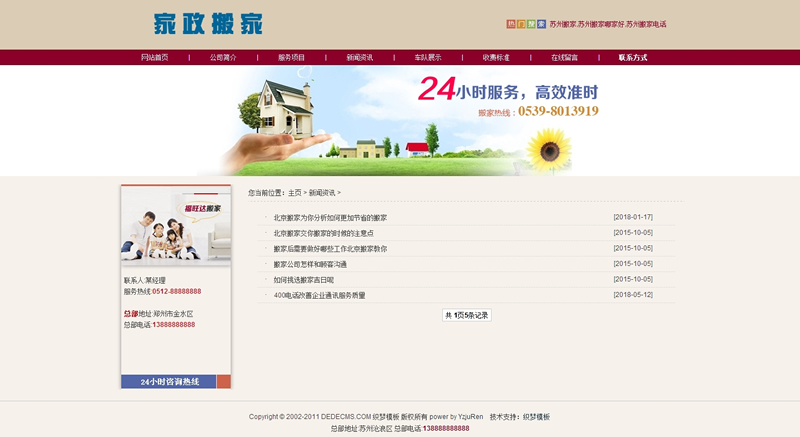 家政搬家貨運(yùn)類企業(yè)公司網(wǎng)站織夢模板