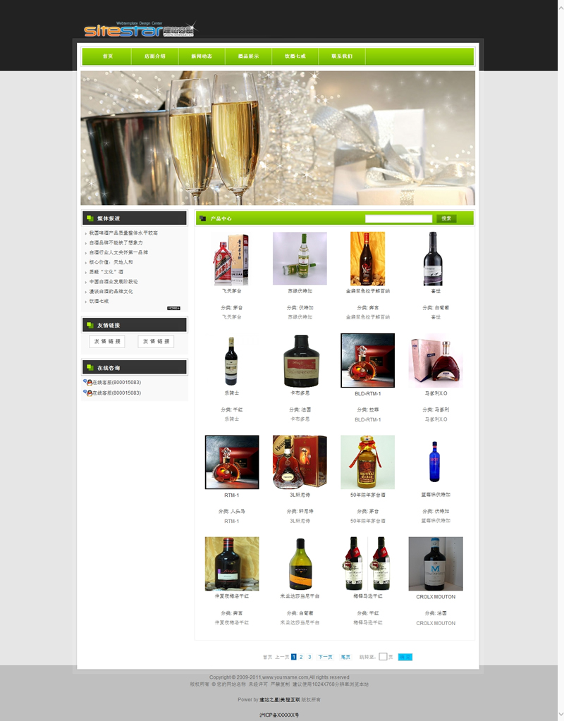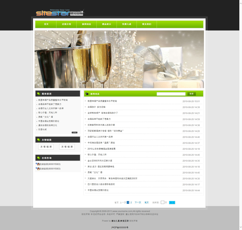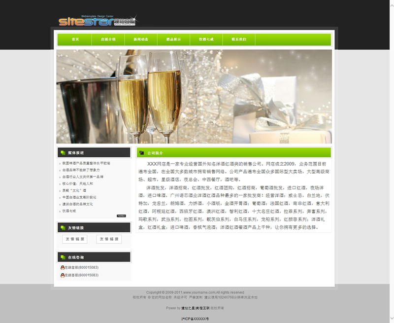 模板編號:     S1502 酒類綠色食品類各種飲料產(chǎn)品建站程序模板