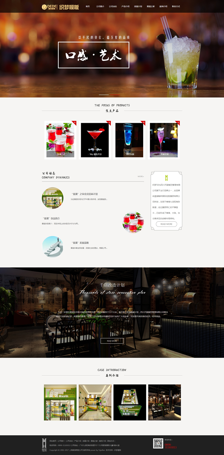 主頁 > 網站建設 > 網站模板 > 酒類、食品、服飾、服務 > 簡介大氣餐飲連鎖企業(yè)織夢模板