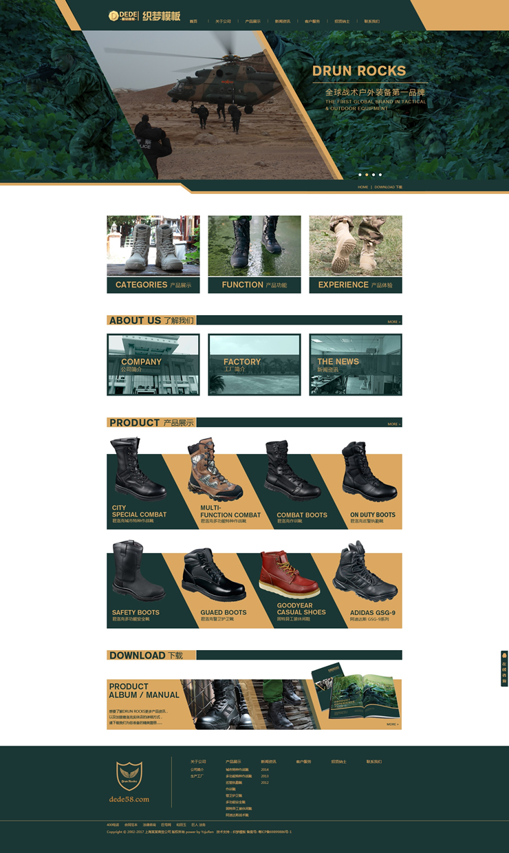 主頁 > 網(wǎng)站建設(shè) > 網(wǎng)站模板 > 酒類、食品、服飾、服務(wù) > 軍綠色品牌鞋業(yè)鞋類行業(yè)公司織夢(mèng)模板