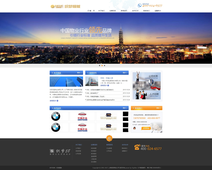 主頁 > 網(wǎng)站建設(shè) > 網(wǎng)站模板 > 酒類、食品、服飾、服務(wù) > 藍色物業(yè)類企業(yè)公司網(wǎng)站織夢模板