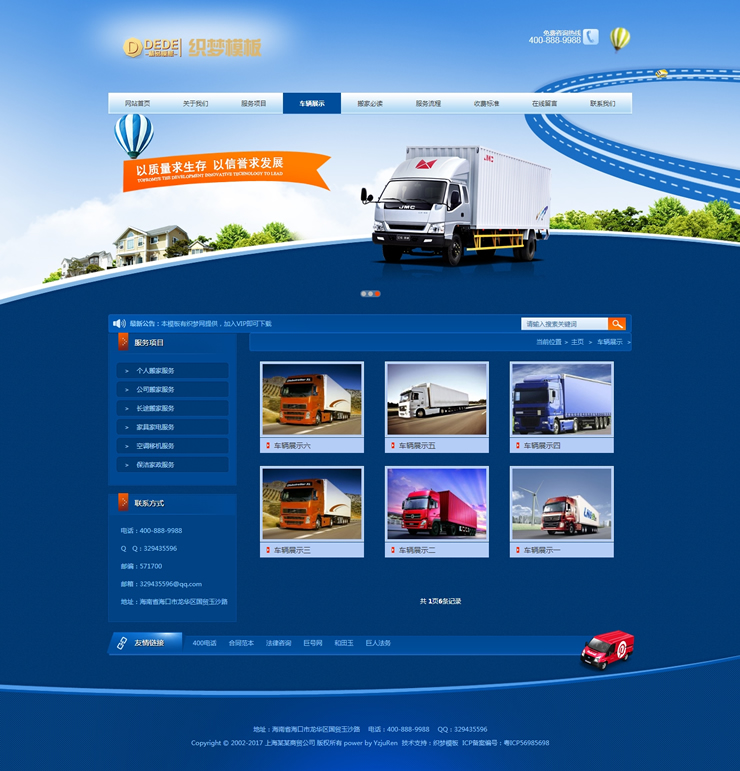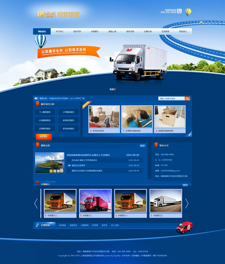 模板編號:     B1798 藍(lán)色大氣搬家家政公司網(wǎng)站織夢源碼