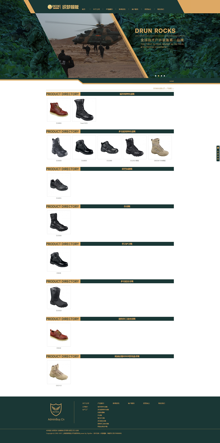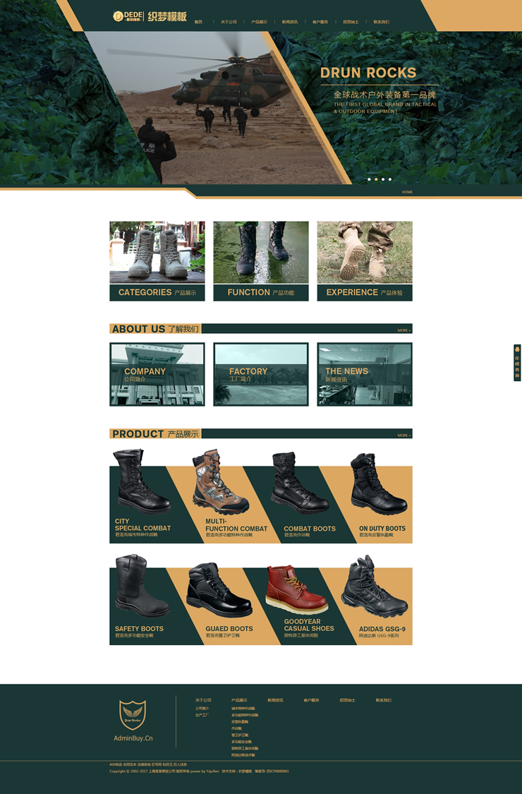 主頁 > 網(wǎng)站建設(shè) > 網(wǎng)站模板 > 酒類、食品、服飾、服務(wù) > 軍綠色品牌鞋業(yè)鞋類行業(yè)公司織夢模板(修正版