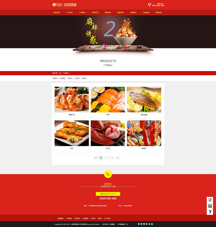 模板編號(hào):     B2085 紅色風(fēng)格食品飯店類企業(yè)網(wǎng)站織夢整站模板源碼