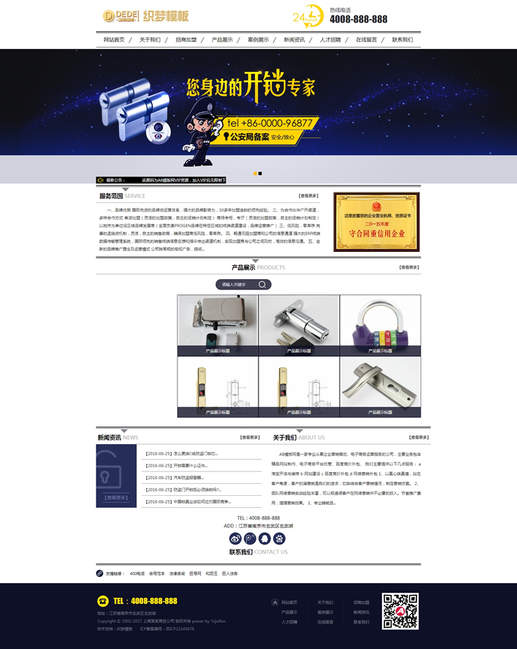 模板編號:     B2092 藍黑風格生活服務行業(yè)網站源碼 家政開鎖織夢模