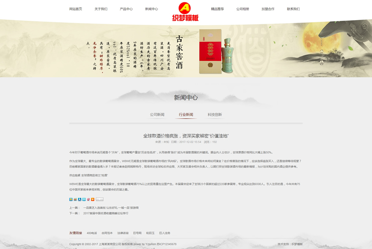 主頁(yè) > 網(wǎng)站建設(shè) > 網(wǎng)站模板 > 酒類、食品、服飾、服務(wù) > 響應(yīng)式精品包裝白酒類網(wǎng)站織夢(mèng)模板酒類酒業(yè)酒