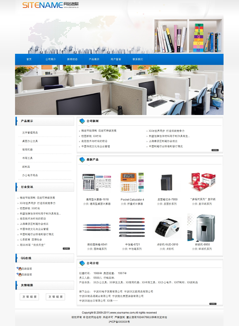 模板編號:     S1061 文化辦公用品及相關(guān)文教用具建站模板