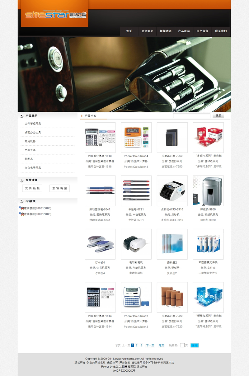 模板編號:     S1236 文學(xué)文教辦公耗材易損品辦公用器建站模板