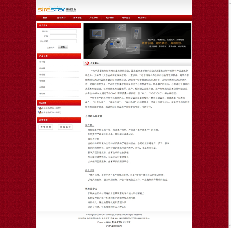 模板編號:     S1406 電子工業(yè)產(chǎn)品機械化電子公司建站模板