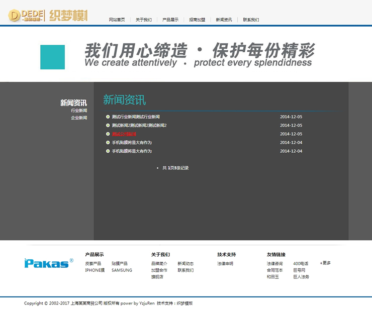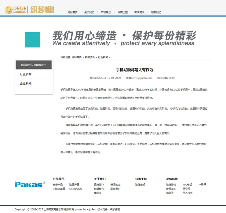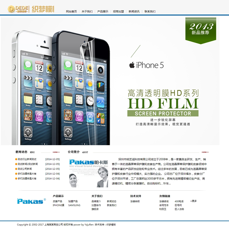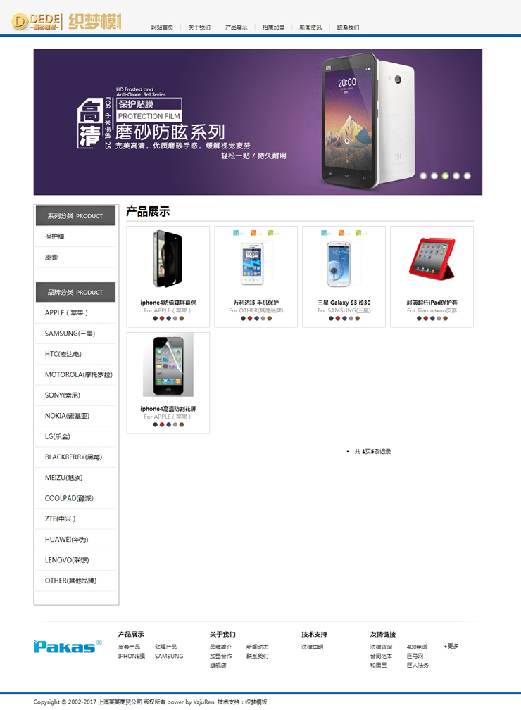 手機(jī)貼膜皮套營銷類企業(yè)網(wǎng)站織夢模板