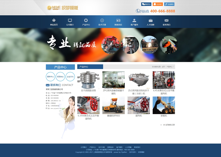 模板編號:     B1833 機械電子類企業(yè)織夢dedecms模板