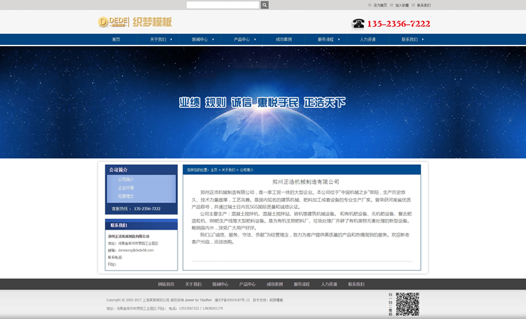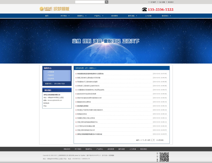 模板編號:     B1844 藍色機械電子通用類企業(yè)站dedecms模板