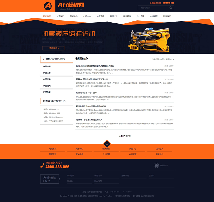模板編號:     B1965 橙色機電設(shè)備產(chǎn)品企業(yè)站源碼 織夢機械設(shè)備模板