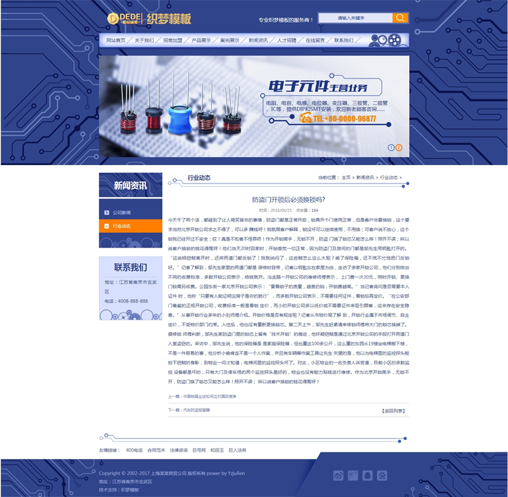 模板編號:     B2083 電子機(jī)械設(shè)備行業(yè)網(wǎng)站源碼五金零部件織夢模板