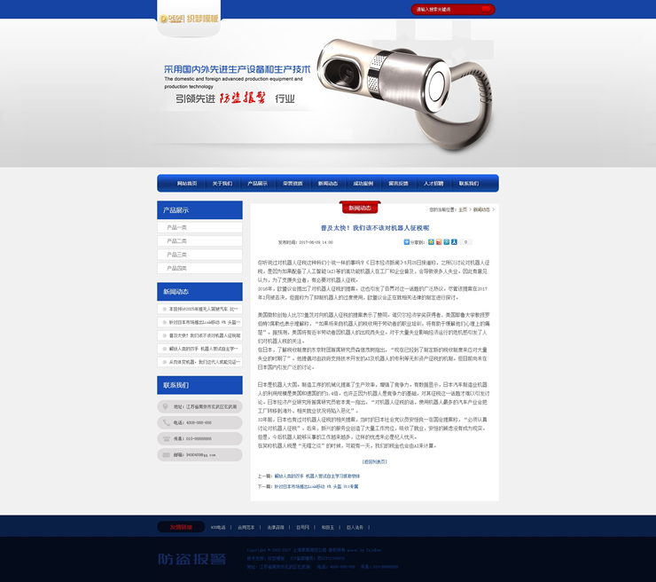 模板編號:     B2131 生產設備防盜報警類網站織夢模板警報安防鎖類