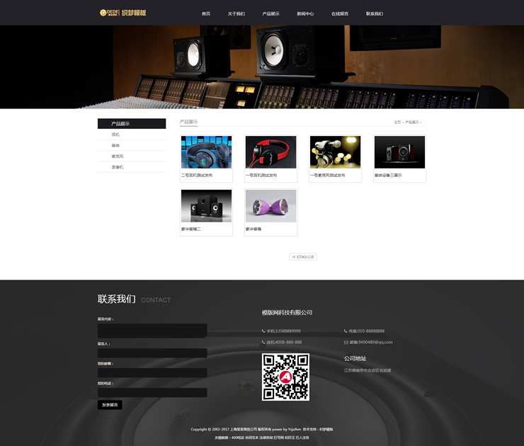 響應式影音ktv設備類網站織夢模板HTML5音響耳機電
