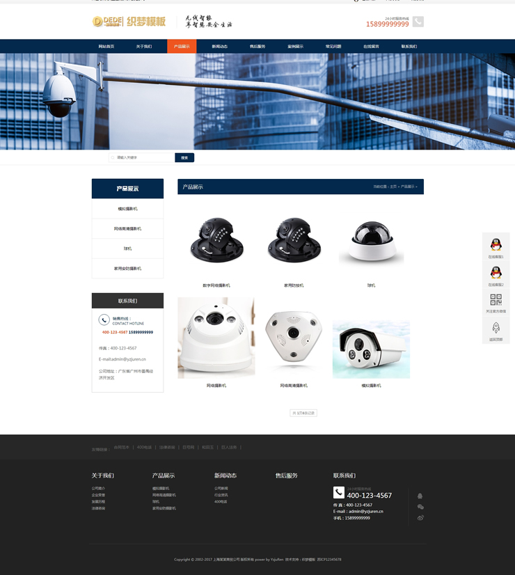 響應(yīng)式智能安防監(jiān)控?cái)z影類網(wǎng)站織夢模板HTML5監(jiān)控