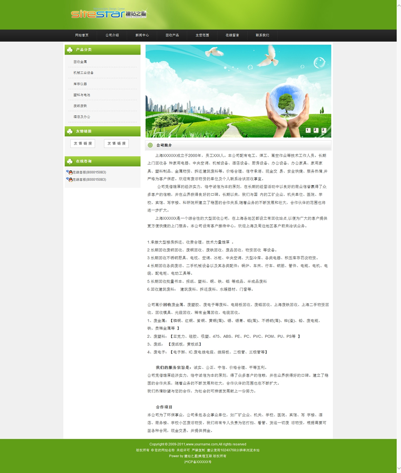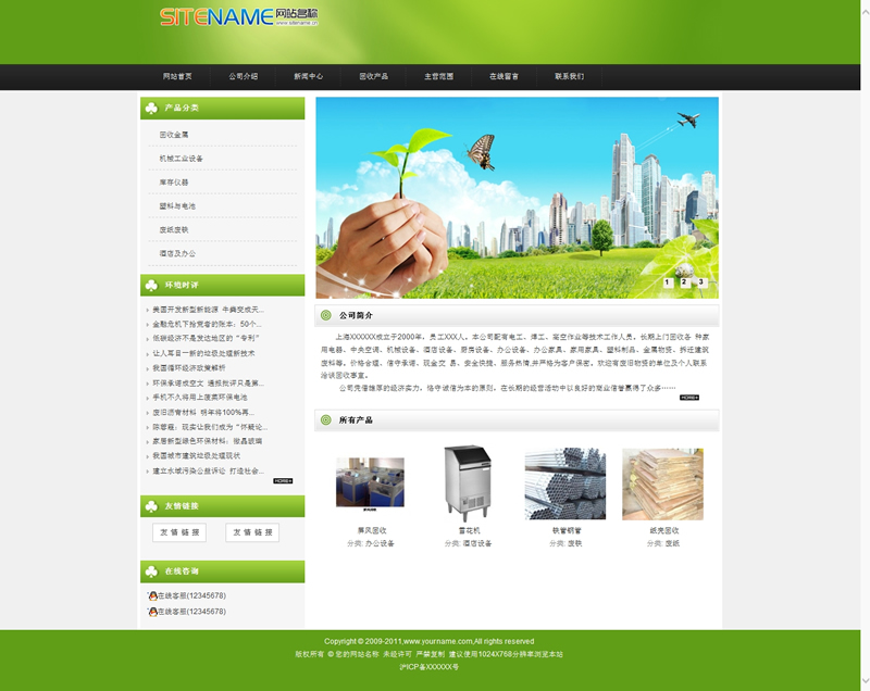模板編號(hào):     S1162 節(jié)能環(huán)保型企業(yè)資源公司回收回公司建站模板