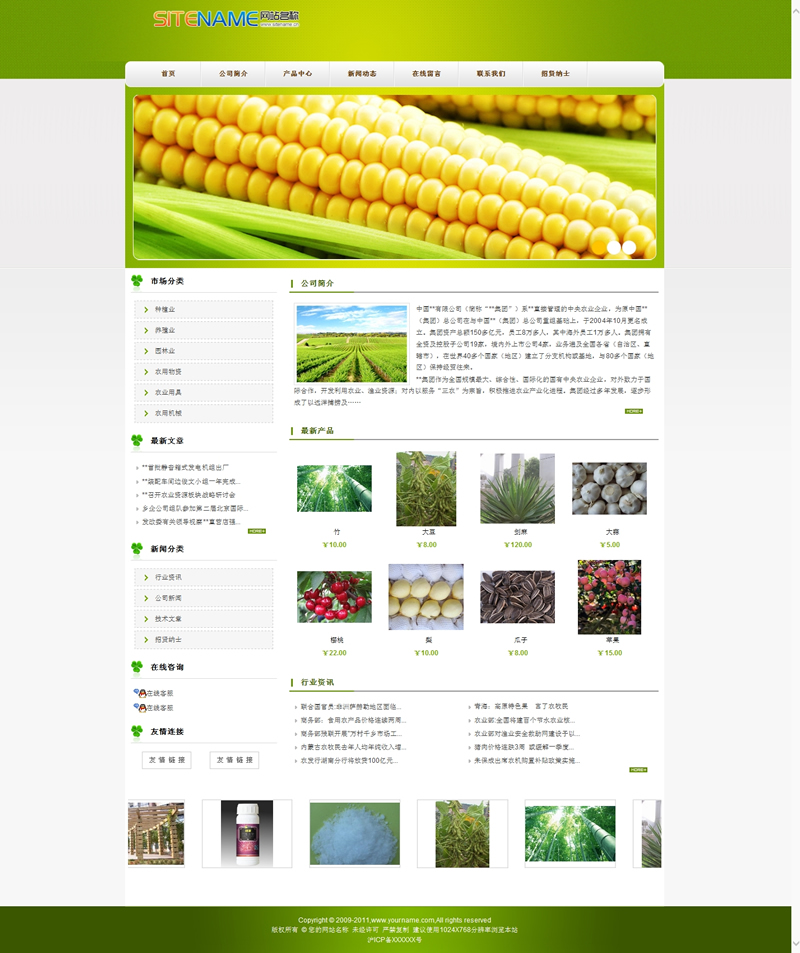 模板編號:     S1247 綠色農莊綠色無公害農業(yè)生長物建站模板