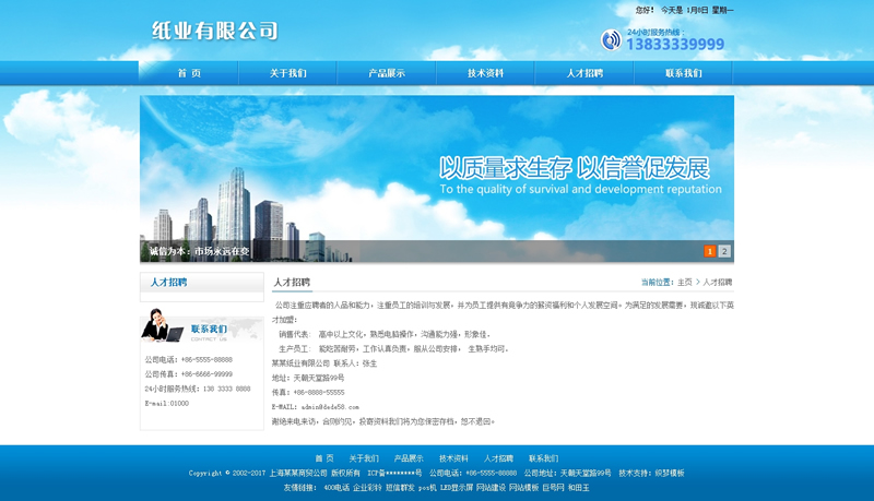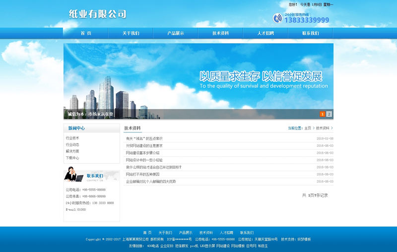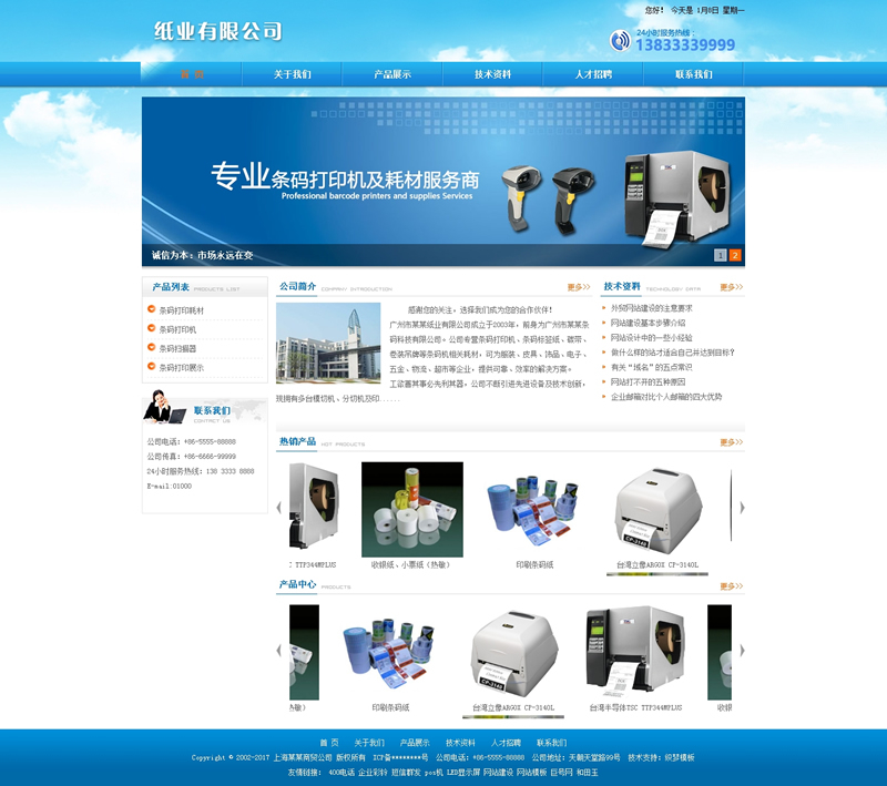 模板編號:     B1380 織夢藍色條碼紙業(yè)企業(yè)通用整站模板