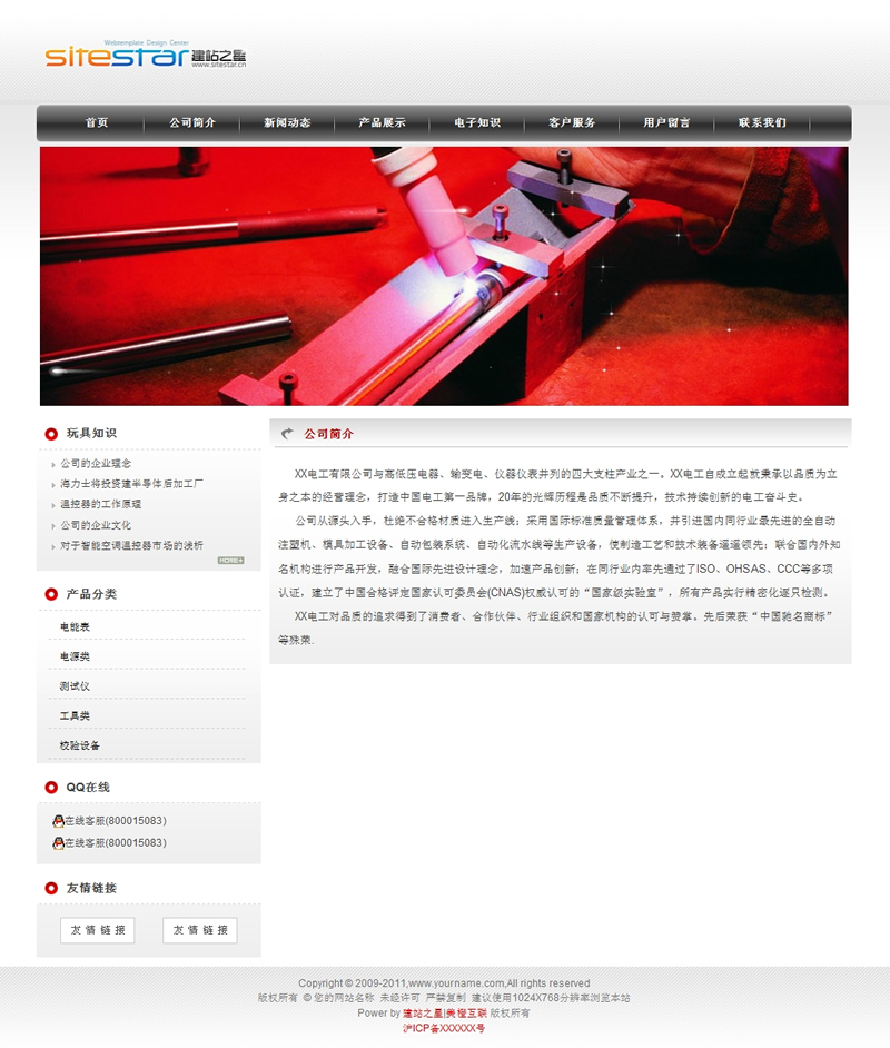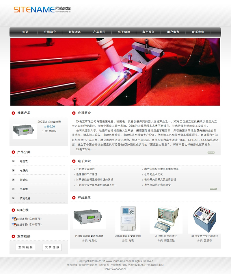 模板編號:     S1461 電力配件電器元件阻件電力設備建站模板