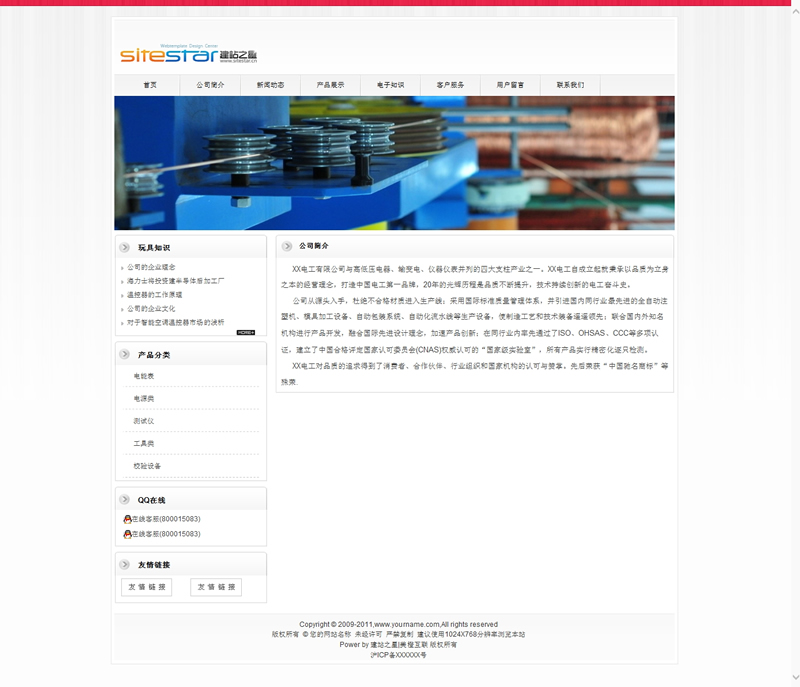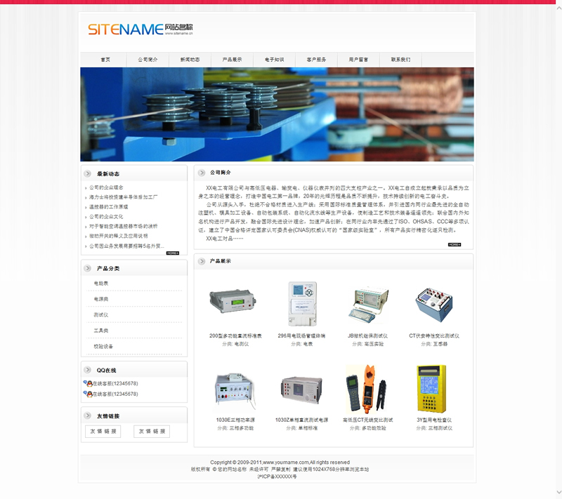 電子元器件電容電器產(chǎn)品公司建站模板
