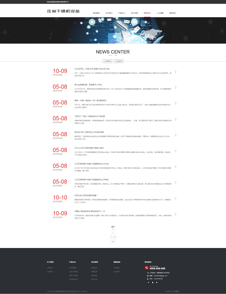 主頁 > 網站建設 > 網站模板 > 農業(yè)、工業(yè)、五金、通用 > 響應式壓縮干燥機設備類網站織夢模板(自適應