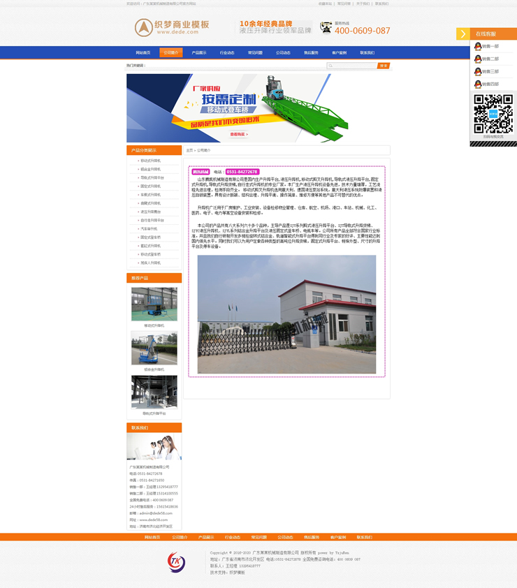模板編號:     B1584 營銷型機械設備制造網(wǎng)站織夢模板(帶手機端)